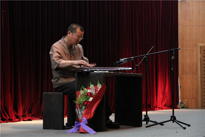 在中场休息后,如山老师首先致辞,对校方的邀请和各方的组织安排表示了感谢,然后又继续演奏,并在演奏之前对曲目进行了解说,引导大家欣赏理解。后半场演奏的曲目包括表现《诗经·鹤鸣》诗意的《鹤鸣九皋》;悠然自得、由李虎群老师伴唱的琴歌《归去来辞》;还有以声中最清之琴音写花中最清之梅花的《梅花三弄》;结束曲《阳关三叠》则使音乐会达到了高潮,余音绕梁不绝如缕,师生在不尽依依中惜别。