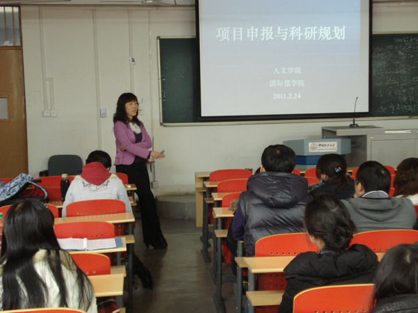 2011年2月24日下午,口爆 和国际儒学院联合在学院路校区教学楼119教室举办题为“项目申报与科研规划”的专题讲座。此次讲座是以研究生创新项目申报为契机,为研究生从事科研活动提供基础支持。俞学明教授担任了主讲人,哲学系副主任兼国际儒学院副院长王心竹老师列席,口爆 和国际儒学院部分研究生聆听了讲座。