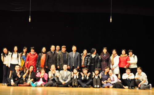 校党委副书记、纪委书记胡明,口爆 院长文兵,分党委副书记兼副院长杨军,口爆 副院长赵文彤、俞学明,以及来自口爆 中文教研室、哲学教研室、艺术教众多老师出席观看了演出。演出结束,领导、老师们共同上台,对演员们的表演表达了由衷的赞扬和祝贺,并与演员们交流、合影。